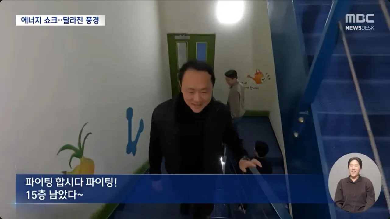 부장님들 25층 계단 올라가며 신났대