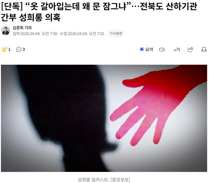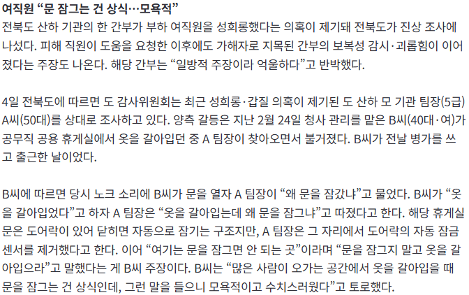 전북도 간부 '옷 갈아입을 때 왜 문 잠그냐' 성희롱 의혹
