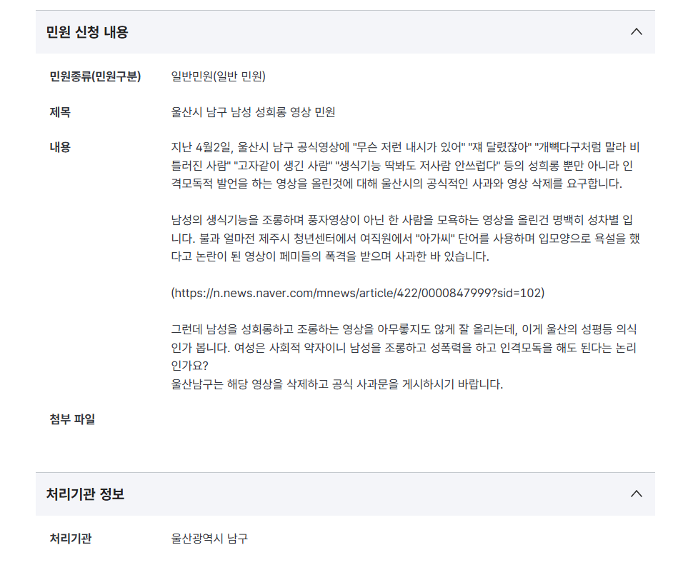성희롱 영상 때문에 울산시로 민원 넣었어