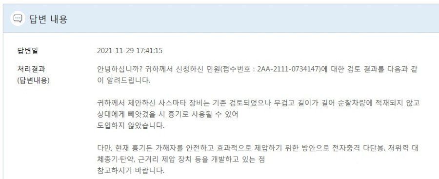 어쨌 공식 입장으로는 전기총이 더 효과적이라고 봐