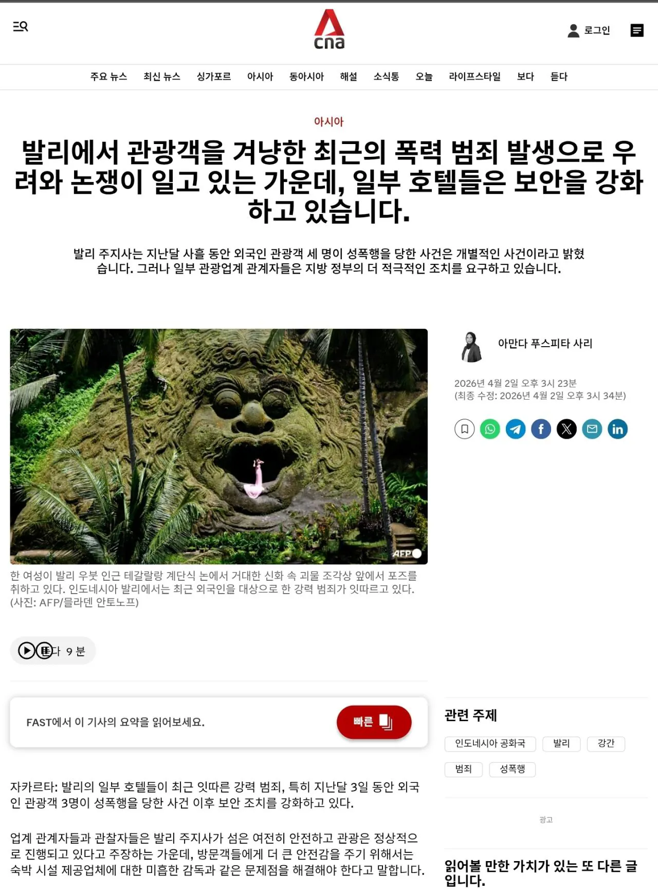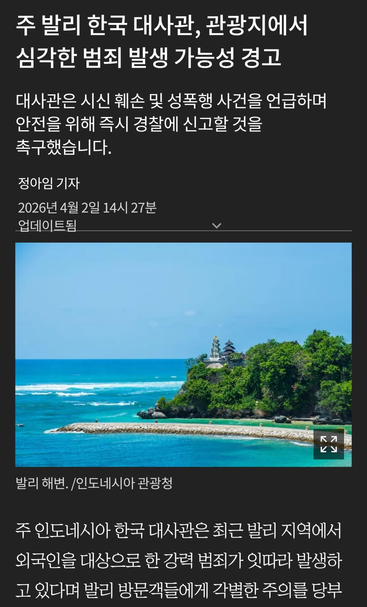 발리가 더 이상 안전한 여행지가 아니라는 평가가 나오고 있습니다.