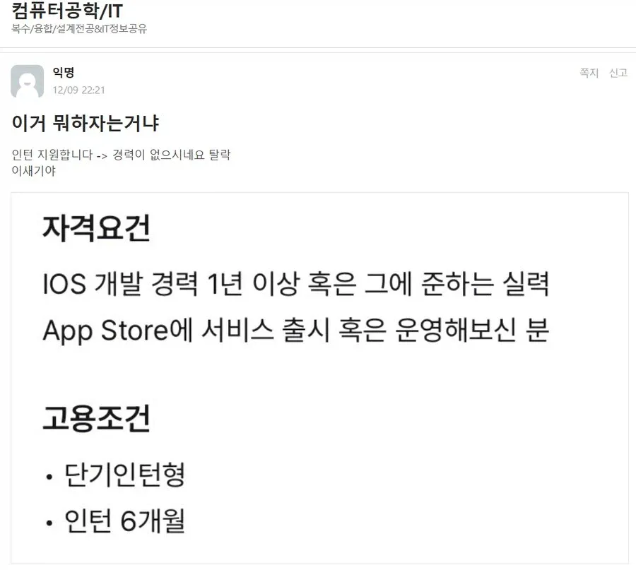 경력이 있어야만 인턴 지원이 가능하다고
