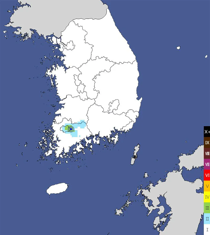 어제 밤 10시쯤 전남 화순군 근처에서 진동이 감지됐대기상청 보도 내용을 보니 규모는 2.4였다고 함발생 지점은 화순군 동북동쪽으로 약 8km 떨어진 곳이고 진원 깊이는 11km 정도이 지역에서 관측된 최대 진도는 4단계였다고전라남도 일대가 영향을 받은 상황