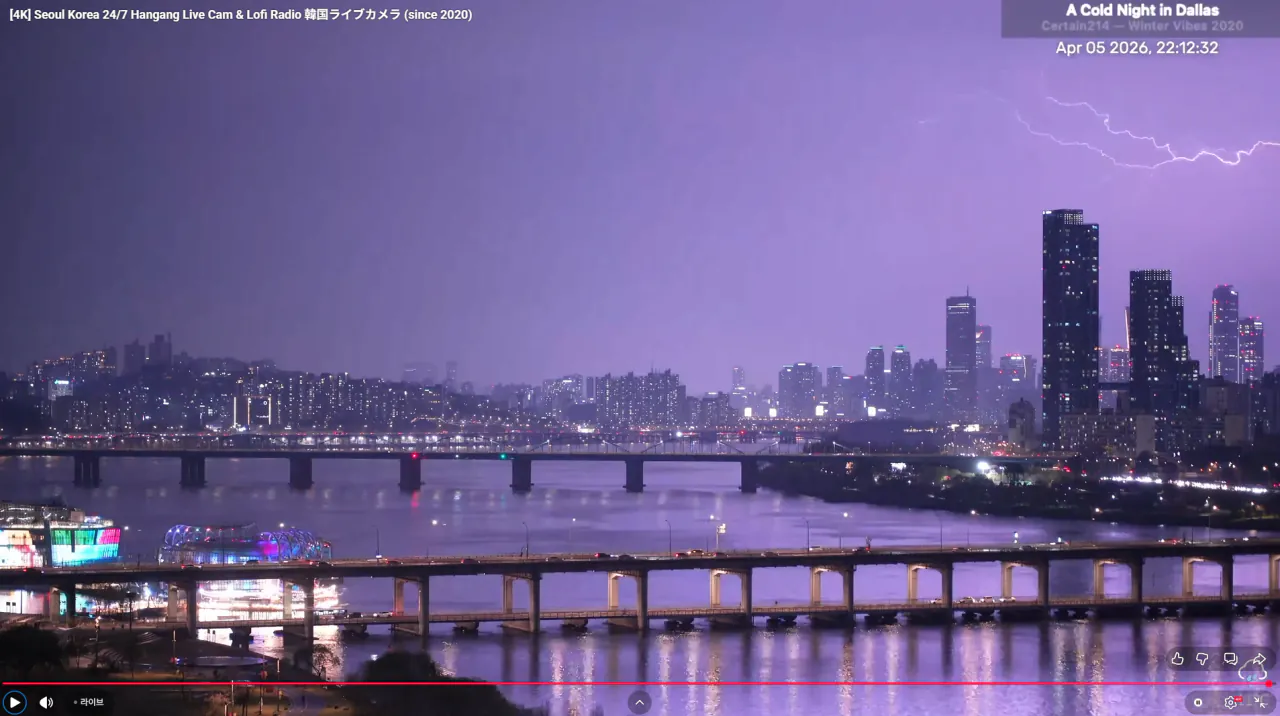 한강 라이브 캡처본, 서울 밤하늘 천둥번개