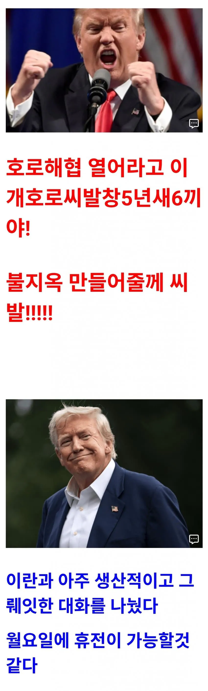 이란 SNS 도발에 트럼프 열받음