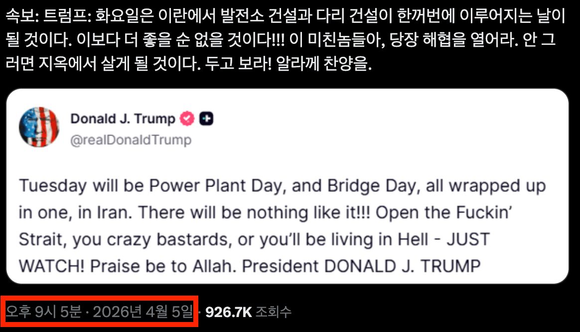 트럼프 한 시간만에 또 말이 바뀌었네