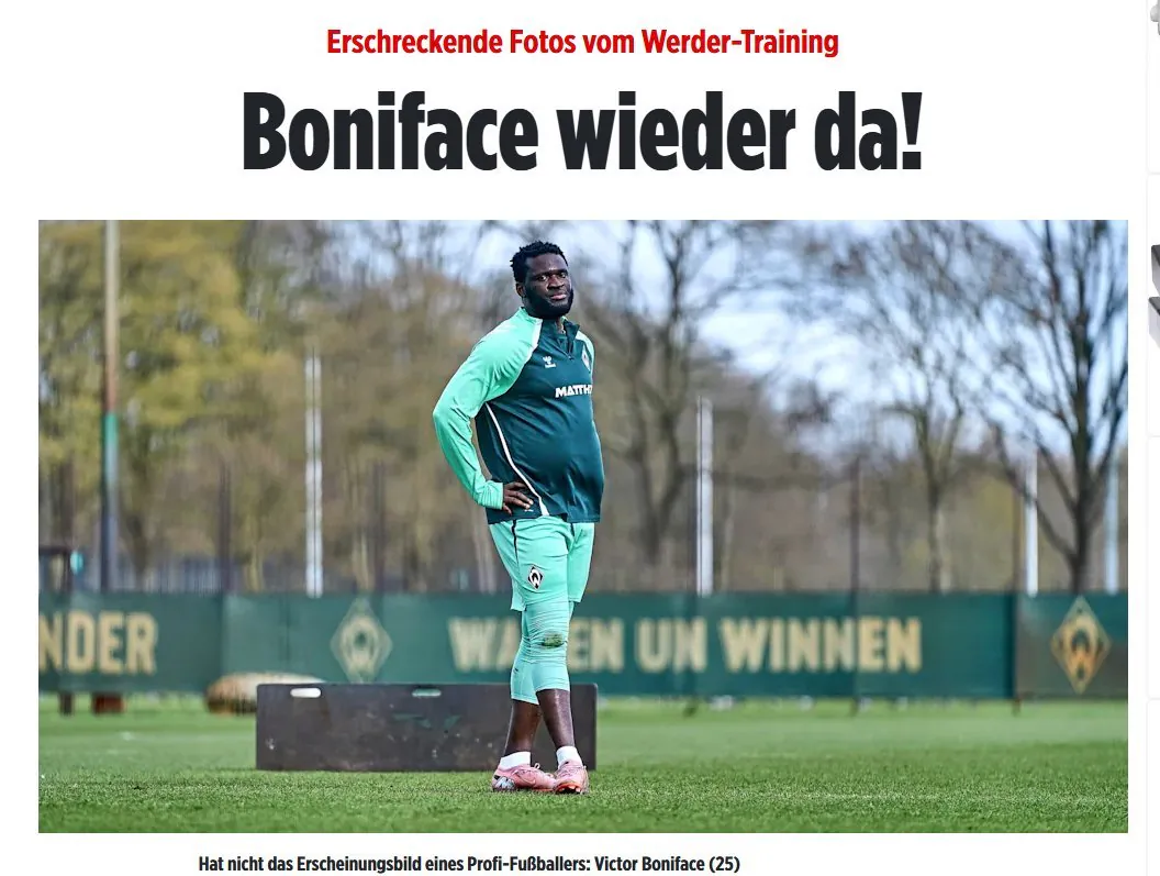레버쿠젠에서 공격수로 활약했던 빅터 보니페이스가 브레멘으로 임대 계약을 맺고 현재 부상에서 회복하는 과정을 진행 중인 것으로 알려졌다