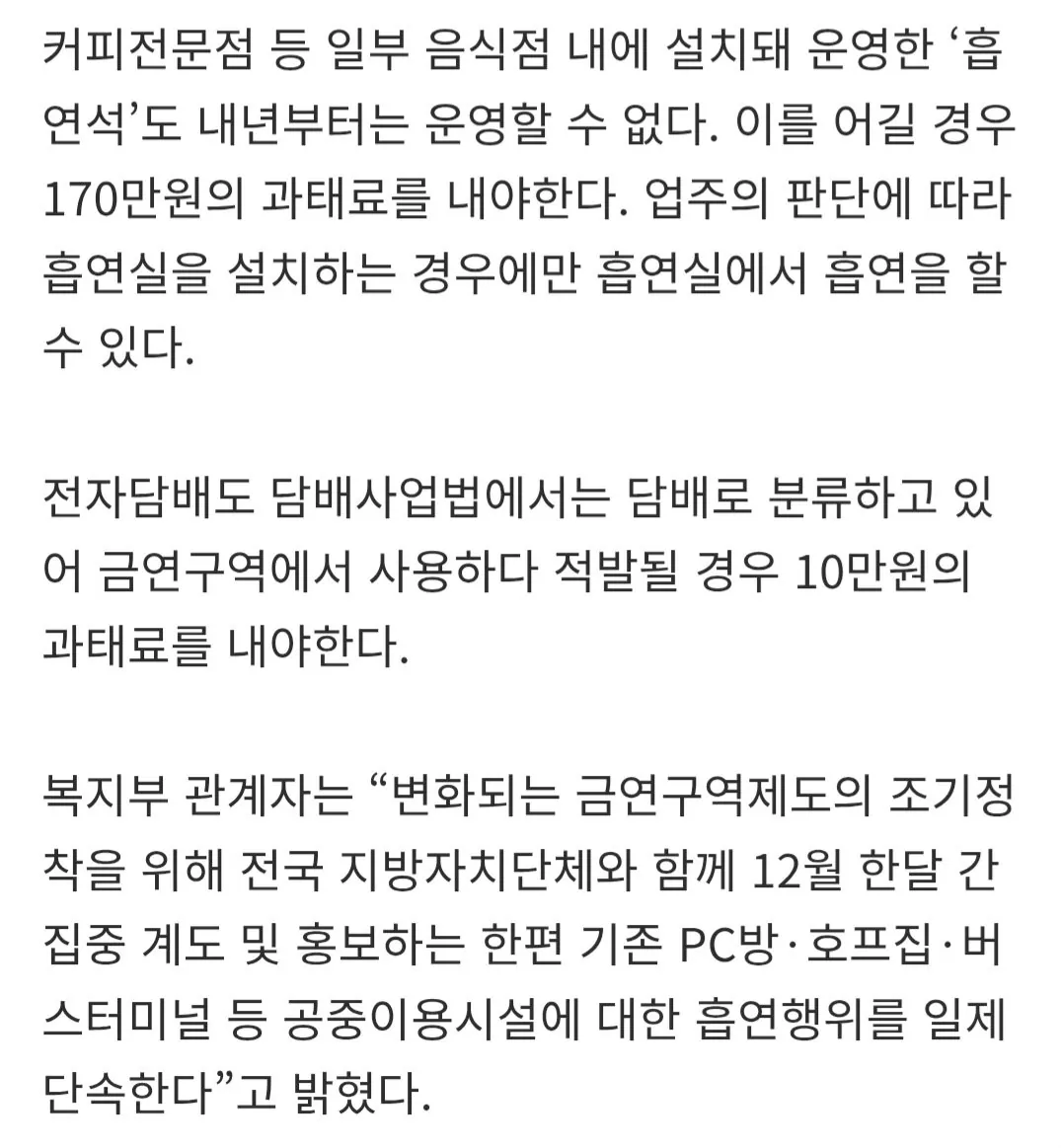 가게 안에서 담배를 피웠다가 적발되어 170만원의 벌금을 받게 되었다고 한다