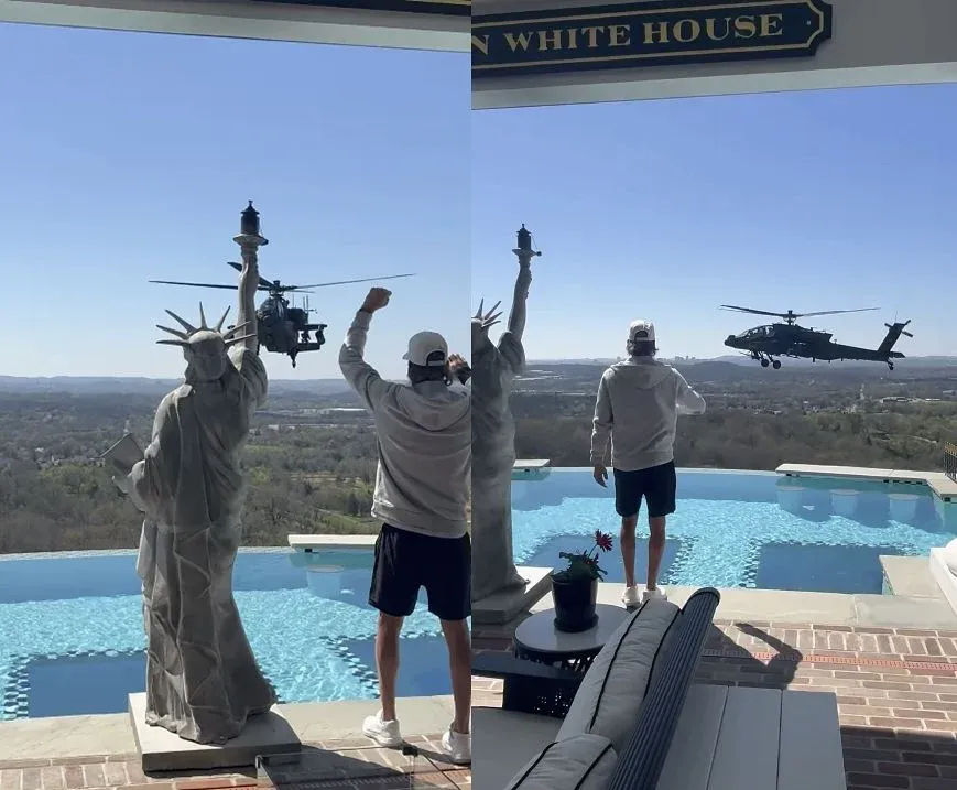 트럼프 지지자로 명성 있는 가수 키드락의 주택 상공을 미군 헬기 2대가 저고도로 날아간 사건이 벌어졌다.국방부가 이 상황을 인지한 후 조사에 착수했고, 확인 결과 해당 비행이 정규 작전도 홍보 활동도 아닌 것으로 드러났다.그럼에도 조종사들의 직무가 일단 정지되었으나, 국방장관이 직접 나가 이들을 애국자라 부르며 정지를 취소해버렸다.결과는 아무런 책임 추궁 없이 마무리됨.