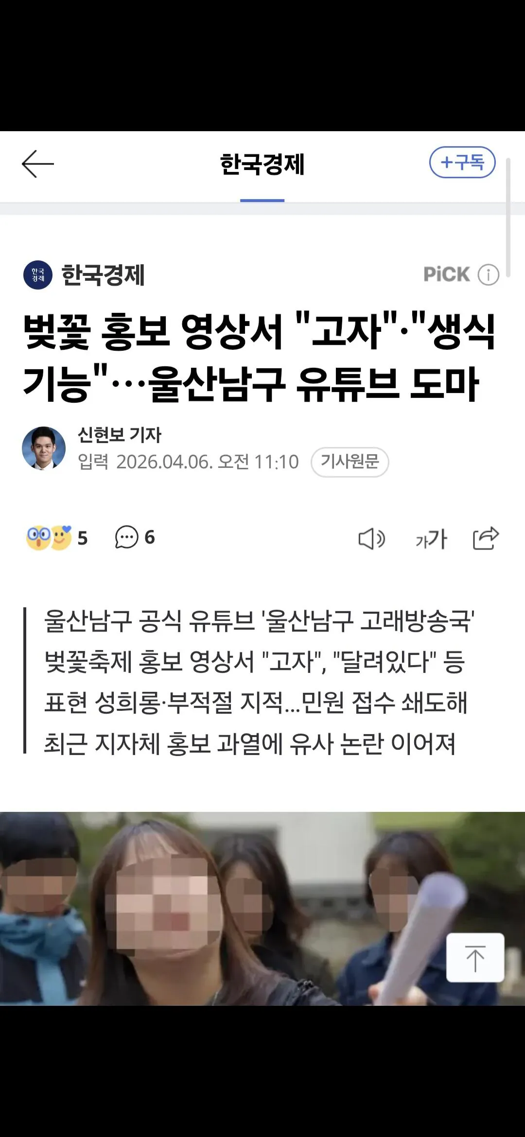 울산 남구청의 공식 유튜브에 올려져 있던 영상에서 남성들을 모욕하는 발언들(고자 표현, 생식기능 언급 등)이 나왔다. 언론 보도가 나오자 서둘러 영상을 내렸는데, 몇 날이 지났음에도 공식적인 사과는 여전히 없고, 기관 내부에서만 갈등이 심해지는 중이라고 한다