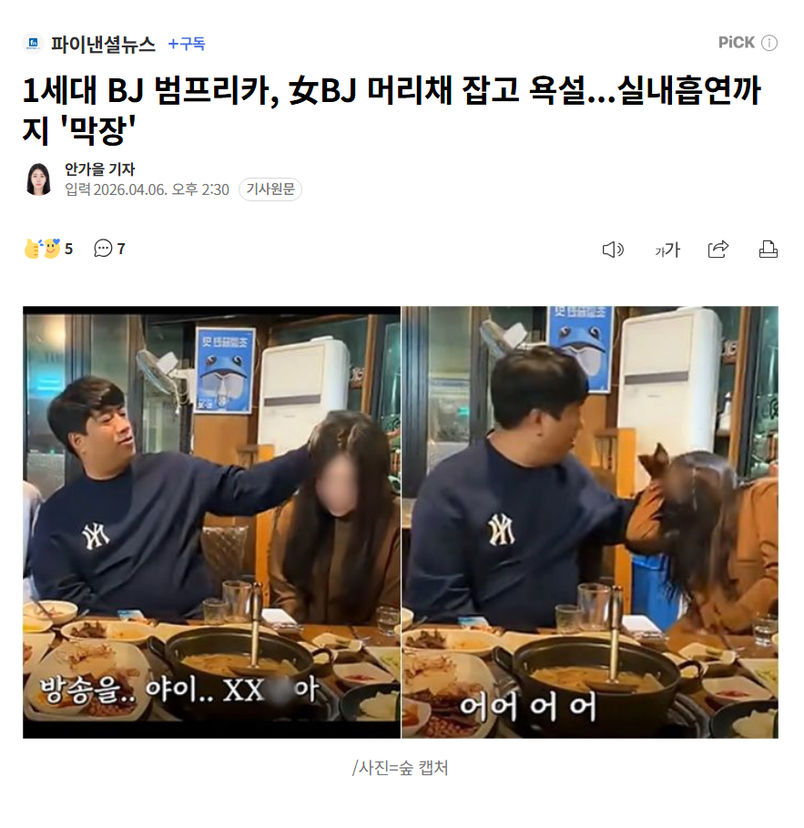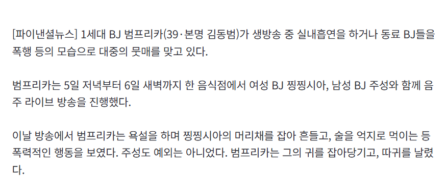 범프리카, 여성 BJ 물리적 폭력에 욕설까지....