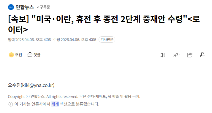 미·이 휴전 뒤 종전 2단계 중재안 받았대