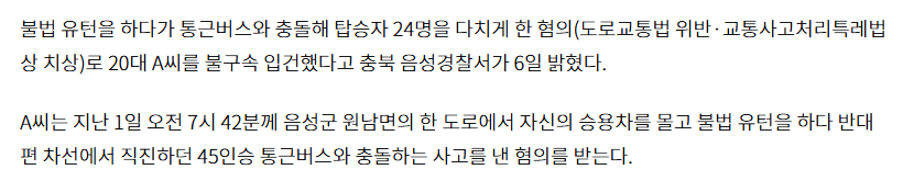 얼마전 불법유턴으로 사고냈던 아반떼 운전자 입건