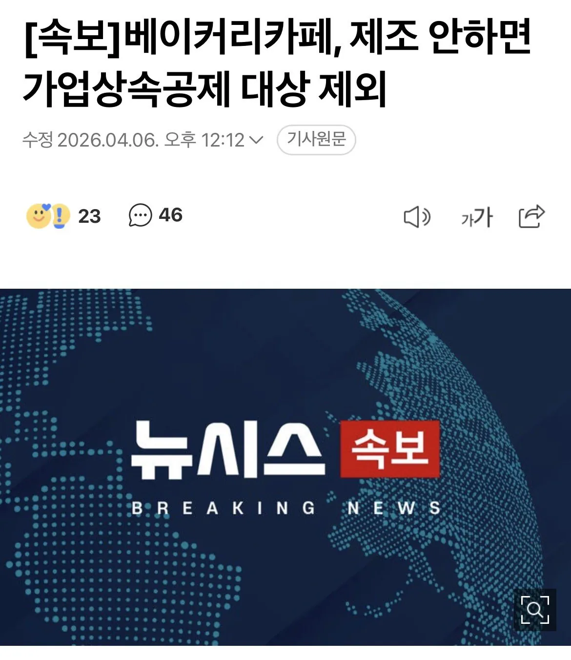 굽지 않는 베이커리는 가업상속공제 대상 아니래