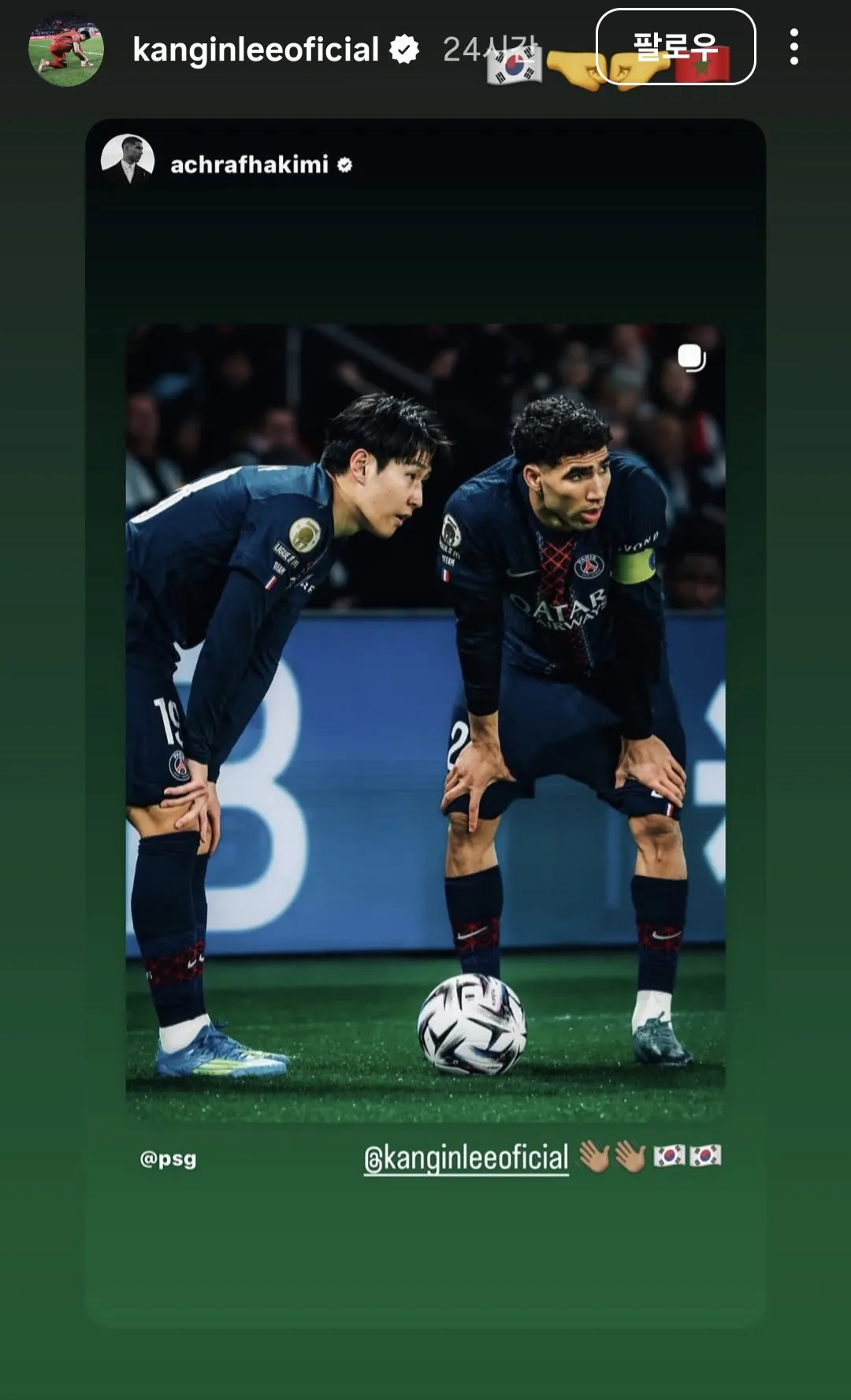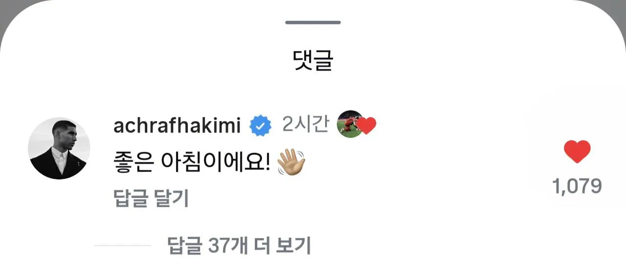 이강인이 최근 올린 게시글 댓글에 한글로 응답