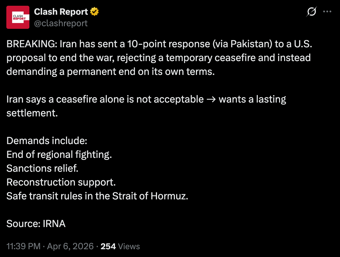 미국으로부터 제안받은 휴전안이 이란의 마음에 들지 않았다. 파키스탄을 중간에 두고 답장을 보냈는데, 열 가지 조건을 담은 문서였다.결국 이란은 말했다. 싸움을 멈추는 것만으로는 충분하지 않다고. 자신들이 요구하는 방식으로 전쟁을 끝내야 한다는 입장이다.이란이 제시한 조건들:• 역내의 무력 분쟁 즉시 중단• 이란에 대한 경제 제재 완전 해제• 전쟁 이후 국가 복구에 대한 지원• 호르무즈 해협의 안전한 항행 보장