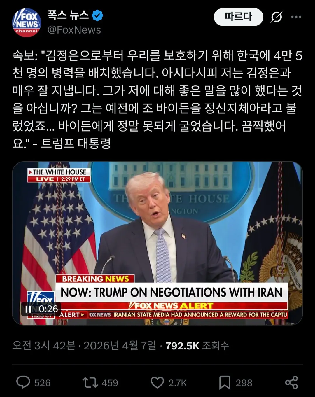 계속 이런 발언들을 하는 거 보면 김정은과 친해지려고 하는 건가