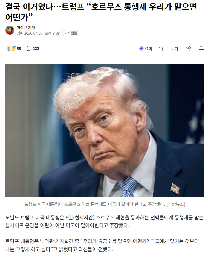 호르무즈까지? 트럼프의 또 다른 계획이라며