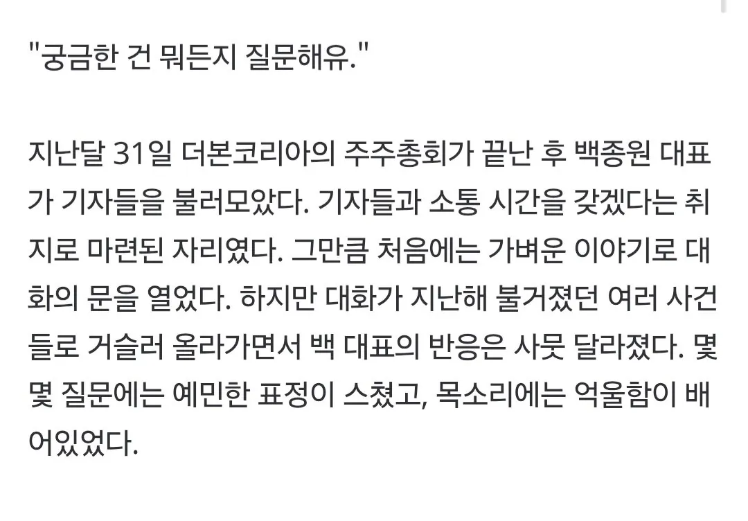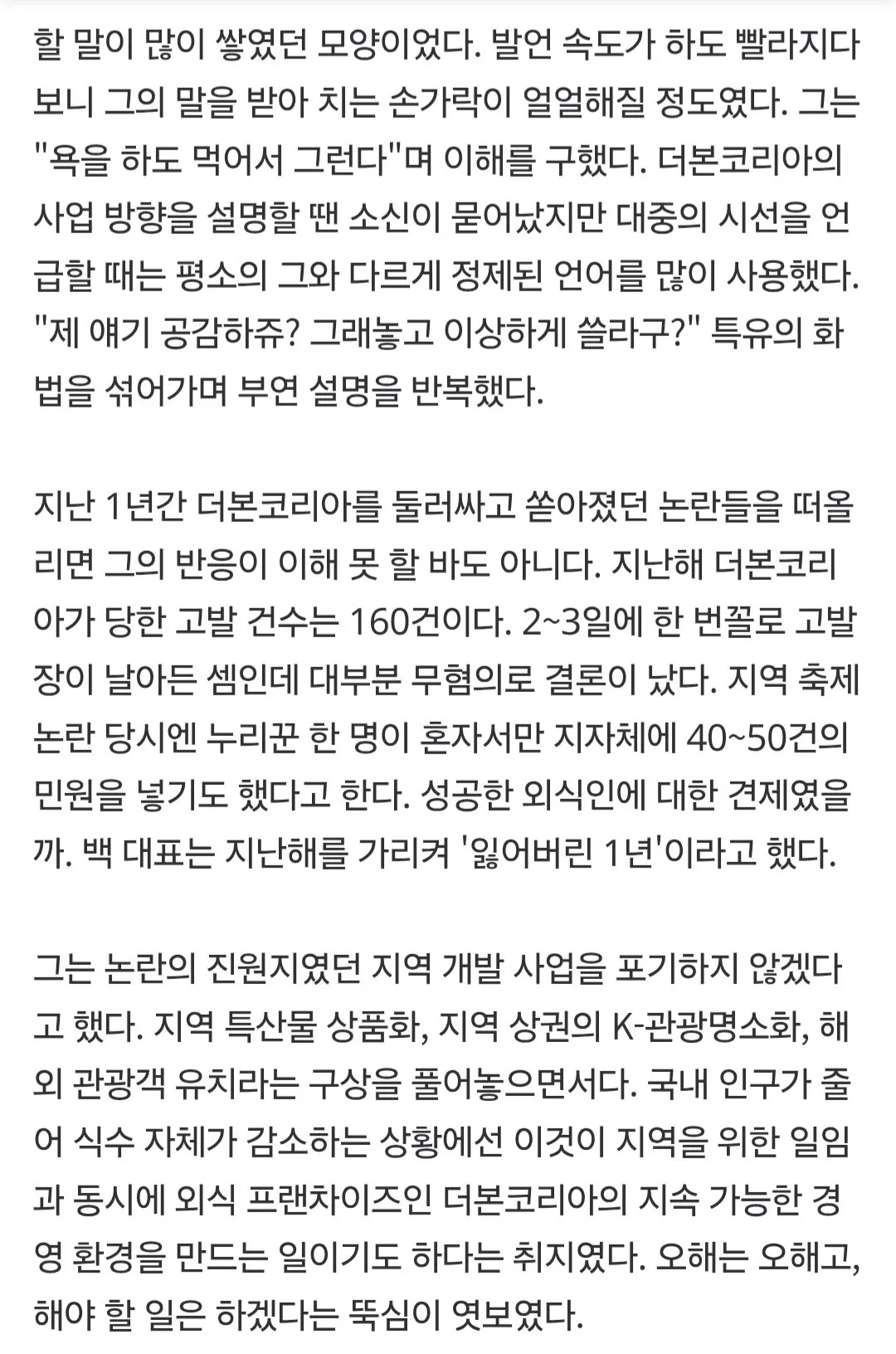 더본코리아 살려내겠다는 백종원의 결의