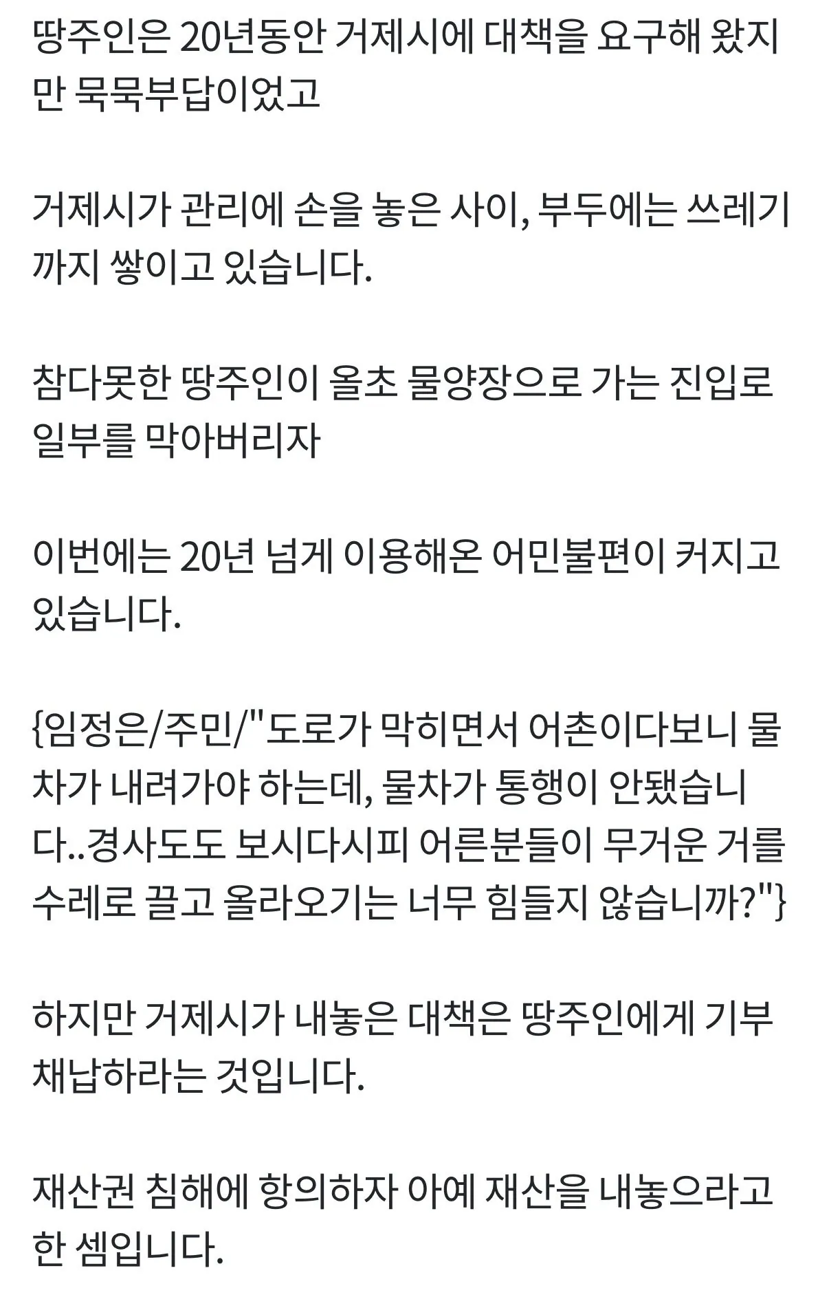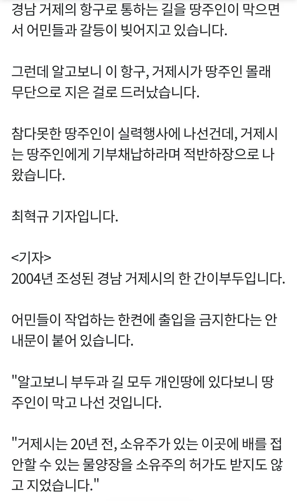 땅주인 몰래 부두 지어놓고 기부채납 요구하는 거제시