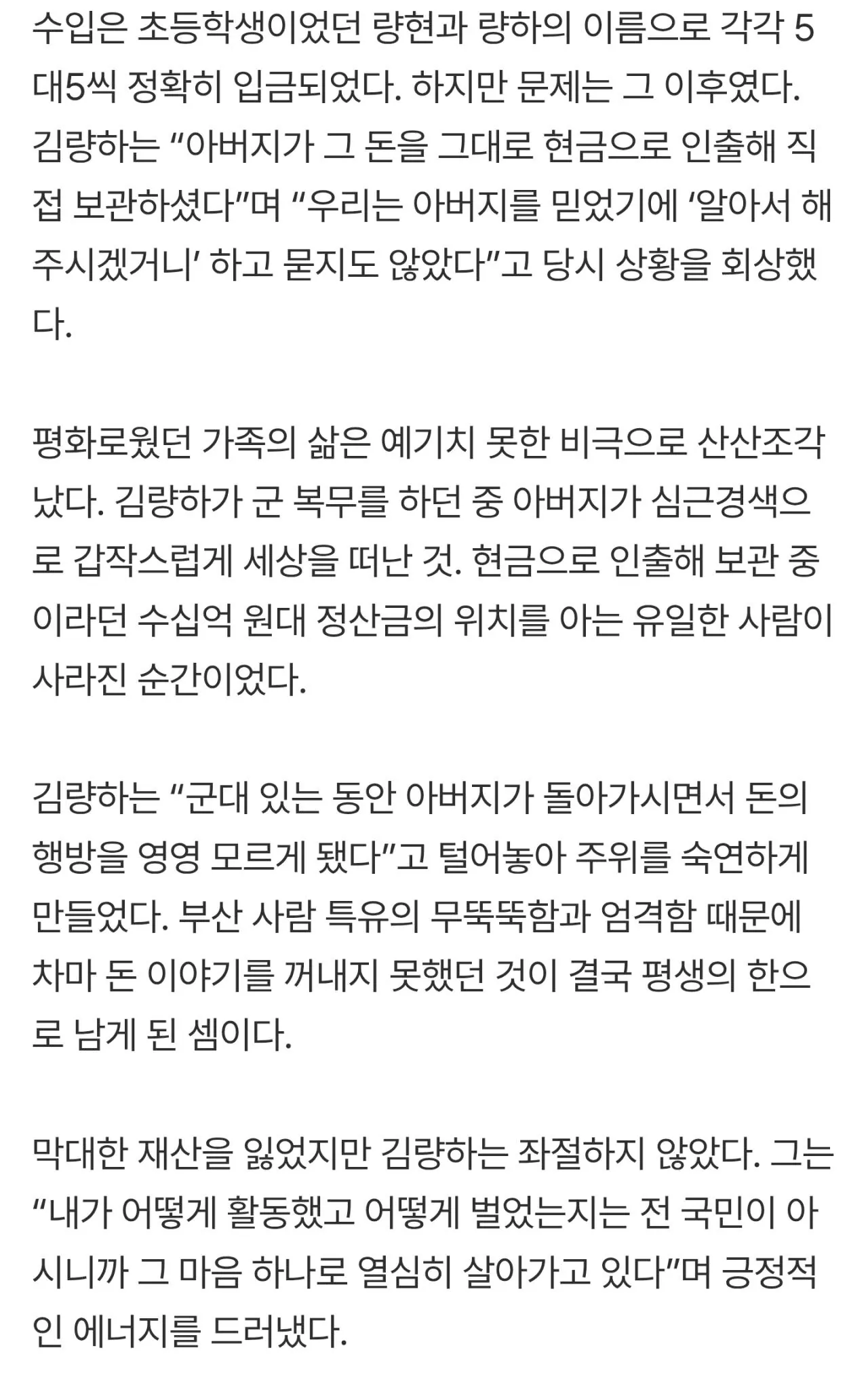 돈도 사라지고 아버지도 떠나고...수십억 버는...
