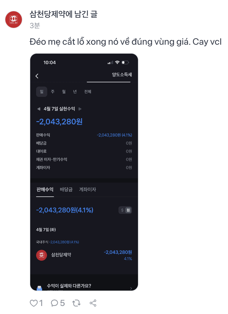 손절해서 나갔는데 그 직후에 본전이 되었다고. 아 진짜 열받는다더라고.