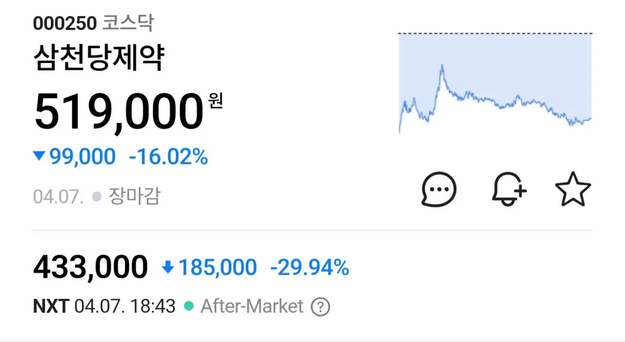 삼천당제약 낙폭이 심하네 ㅠ