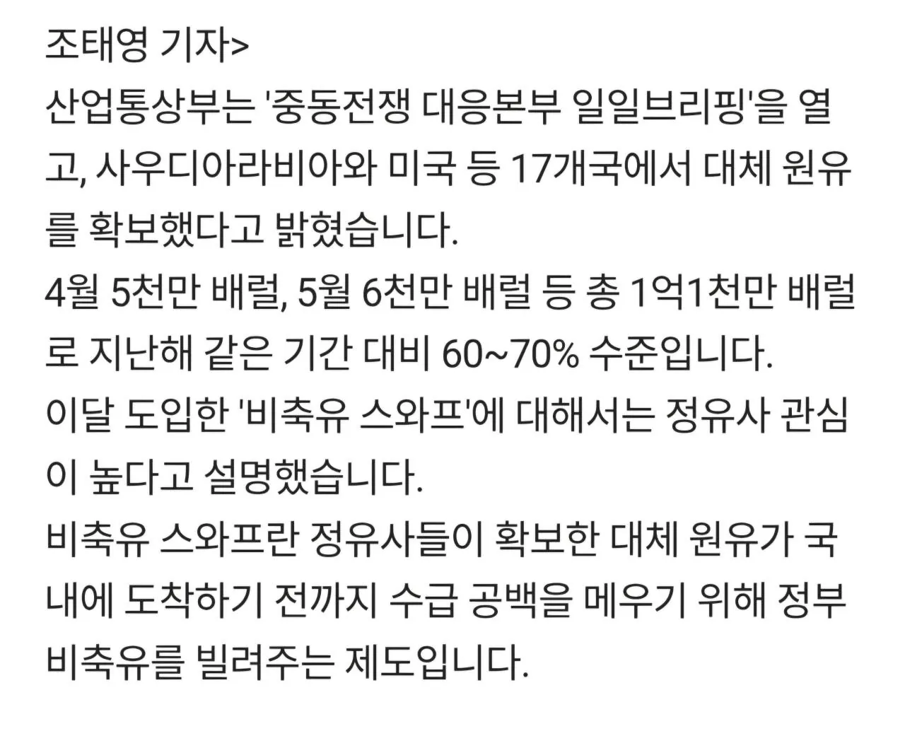 한국이 필사적으로 노력해서 석유 확보 진행 중이라더라..국내 보유분 1억9천만배럴에 새로 확보한 1억1천만배럴을 더하면, 대략 총 3억배럴 정도 가진다고 봐도 될 것 같긴 하네
