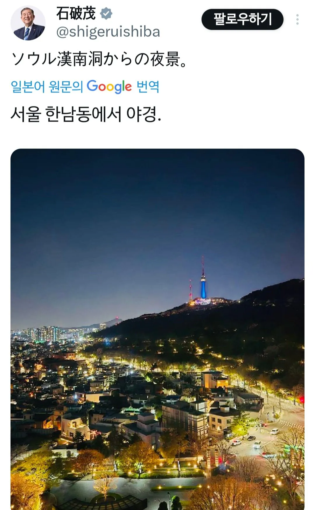 요즘 한국에 머물 중인 이시바 전 총리