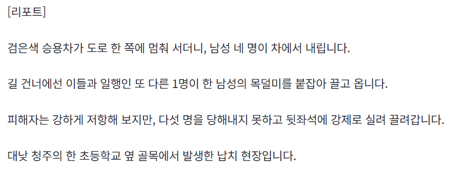 정말 충격적인데 학교 정문 앞에서까지 납치극이 일어났다니... 안전이 점점 위협받는 거 아닌가