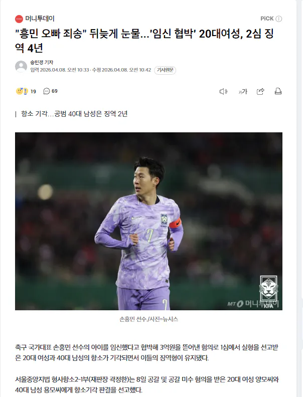 임신을 빌미로 협박한 20대 여성이 항소법원에서 징역 4년형을 선고받았다. 법정에서 죄책감을 드러낸 것으로 전해졌다.