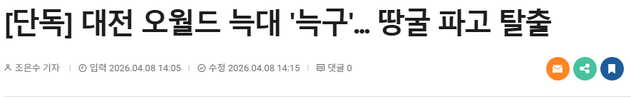 대전 오월드에서 사육 중이던 늑대 늑구가 우리 안에서 몰래 땅을 파내어 탈출한 사건이 발생했다. 관계자들에 따르면 땅굴을 통해 탈출한 것으로 추정되며, 동물원 직원들도 뜻밖의 상황에 대응을 서둘렀다고 알려졌다.