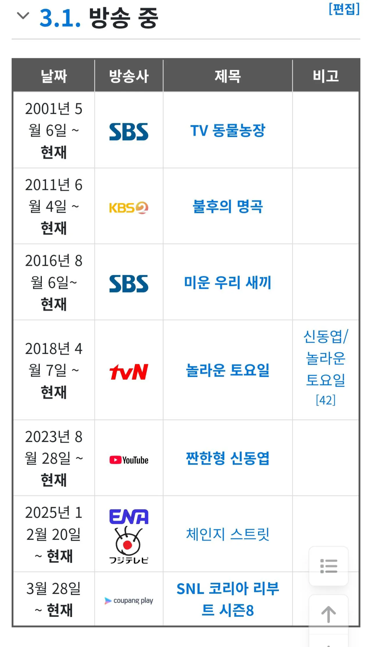 걍 ㅈㄴ 잘해서 방송들이 오래가고 했다하면 방송국 간판되니 많아 보이는 것 뿐임 유재석이 대단한건 많이 해서가 아니라 체력적으로 힘든 프로그램들을 꾸준히해서인거고