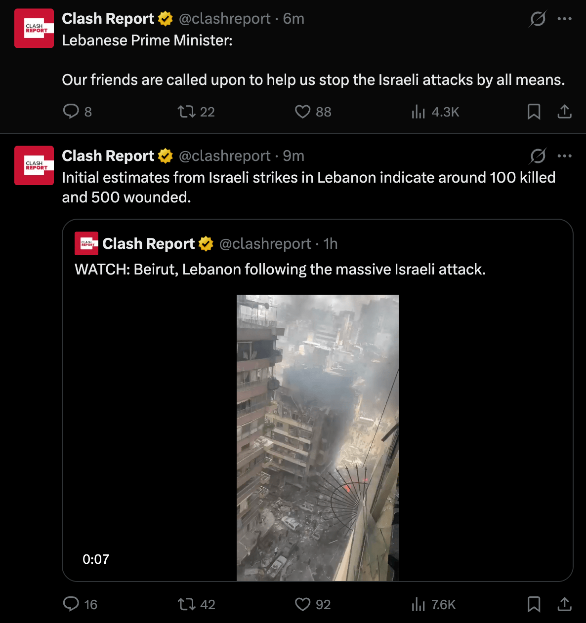 베이루트가 이스라엘 공습으로 큰 타격을 입게 되었다. 지금까지 100여 명이 목숨을 잃었으며 500명 이상의 부상자가 발생했다. 레바논의 총리는 국제사회에 이스라엘의 무력 행사를 중단하도록 압력을 가해달라고 호소하는 중이다.