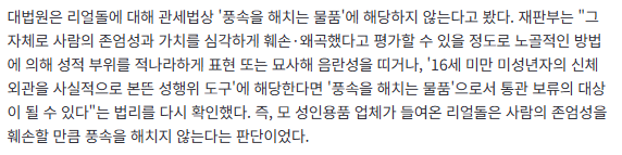 애초에 대법원에선 성인 형상 리얼돌만 허가했지 16살 미만 아동은 허가한 적도 없음.