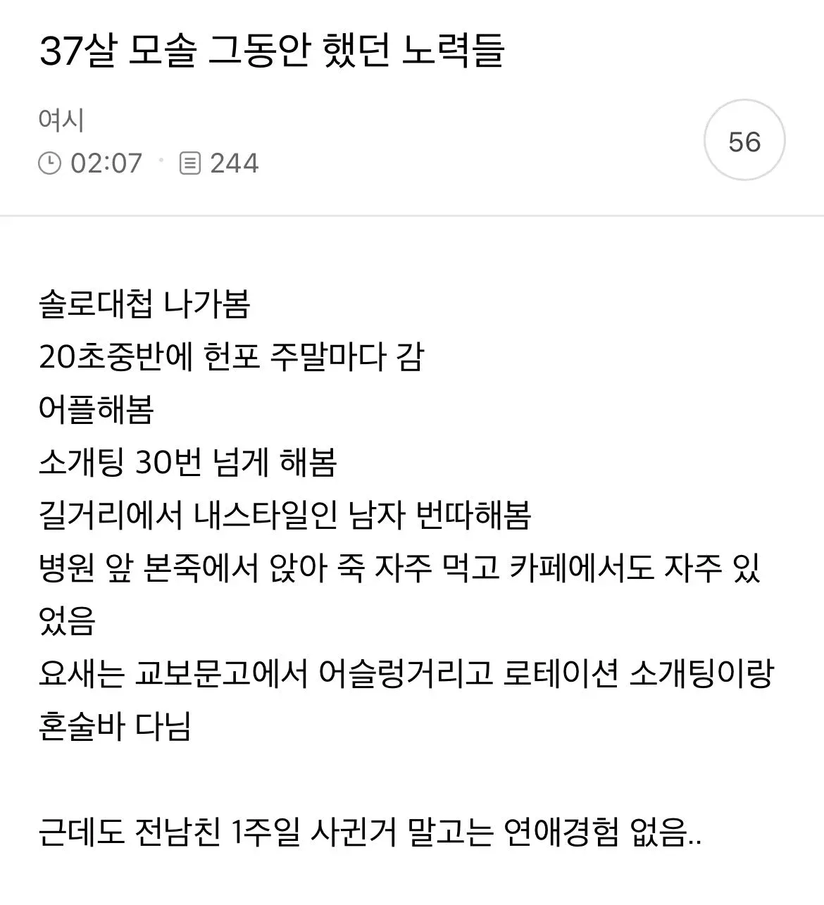 37살 솔로녀, 죽집에서 번데기만 찾는다는데