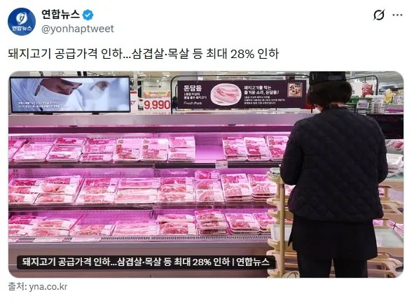 돼지고기 공급가 내렸다더라…삼겹살 28%
