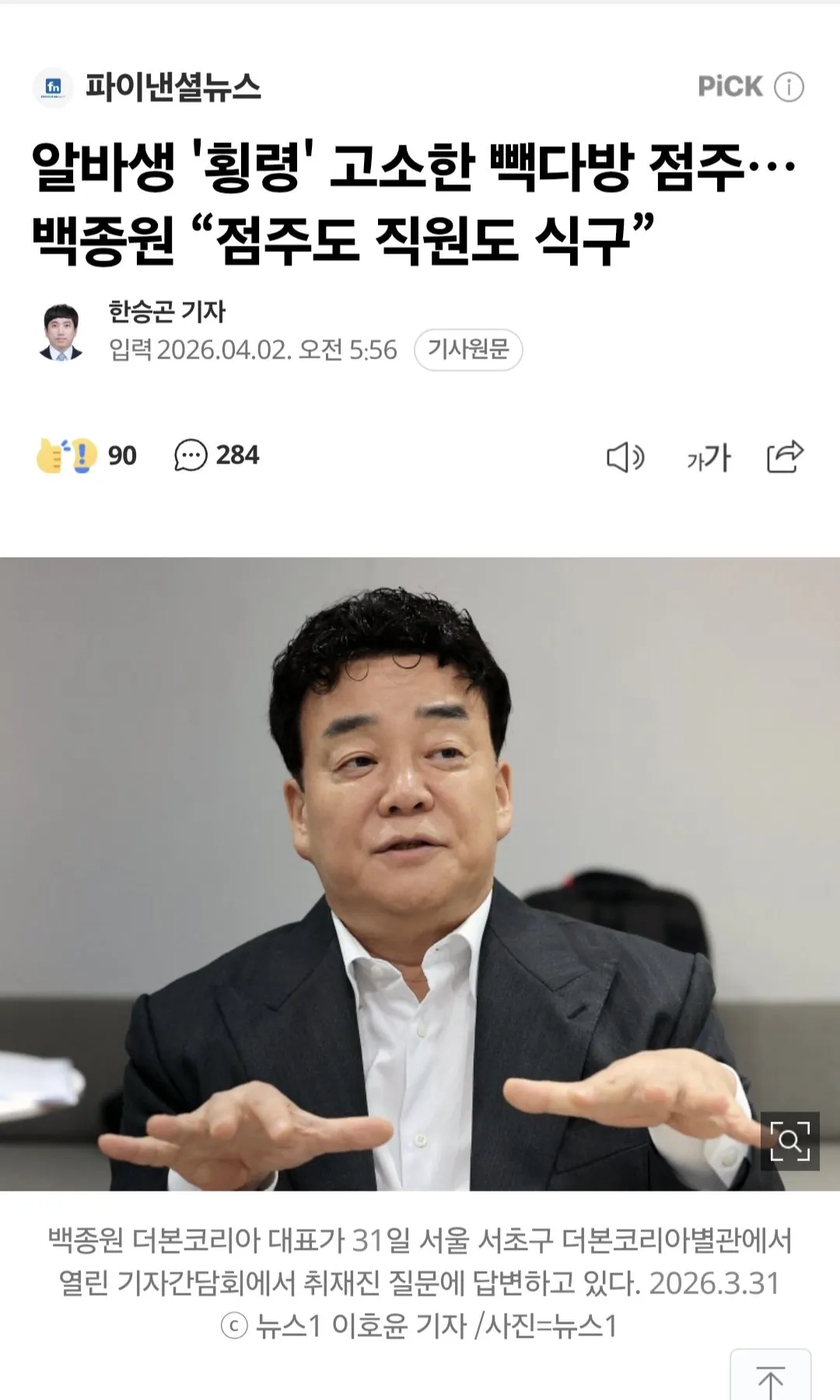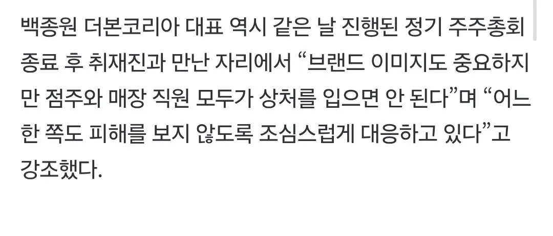 지난 31일 주주총회 자리에서 백종원 대표가 자신의 입장을 드러냈다고 한다.