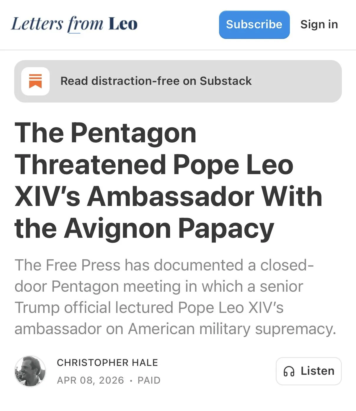 펜타곤의 고위 관계자가 주미 교황청 대사를 국방부로 소환했다. 자리에서 미국의 군사 정책에 유리한 입장을 취할 것을 강요하고, 이를 거부하는 공식 성명 발표를 중단하라고 압박했다.