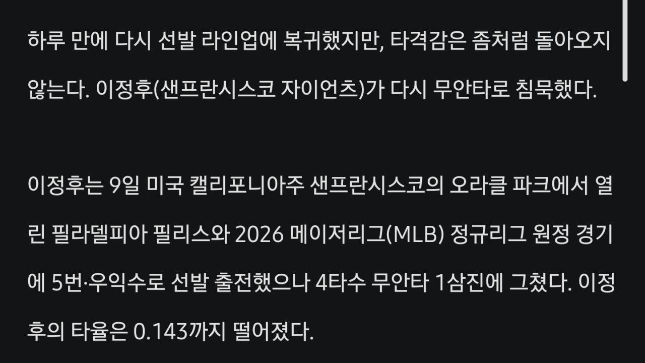 극도의 부진이 계속되고 있다. 오늘도 4타수 무안타를 기록했다.