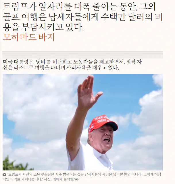 출처 - 가디언 https://www.theguardian.com/commentisfree/2025/mar/17/trump-golf-taxes