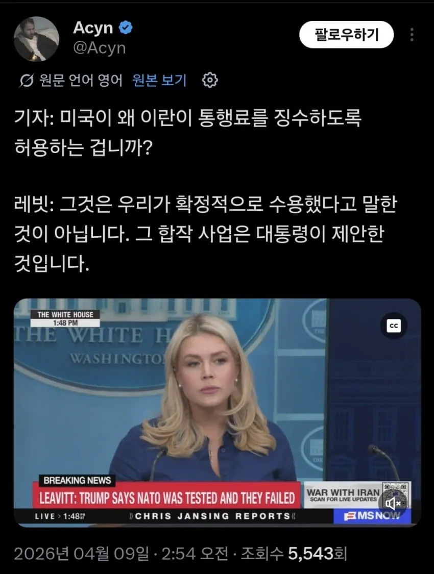 통행료 확정 아니라더. 트럼프가 직접 합작 회사 설립하자고 이란에 제안한 거네....