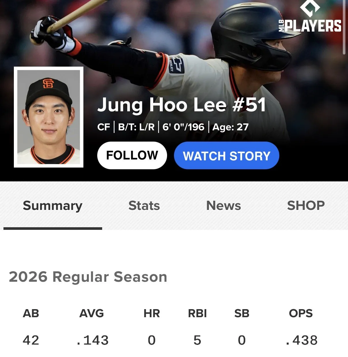 4타수 무안타타율 : 0.143