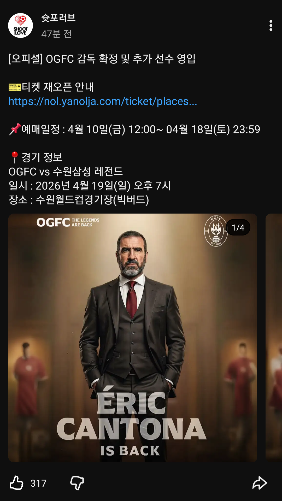 에릭 칸토나가 슛포러브 OG FC의 감독을 맡게 됐다.