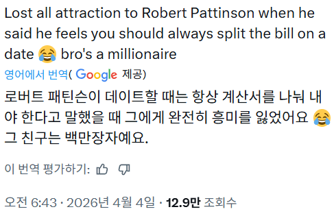 해외서 뜨거운 로버트 패틴슨 데이트비 발언