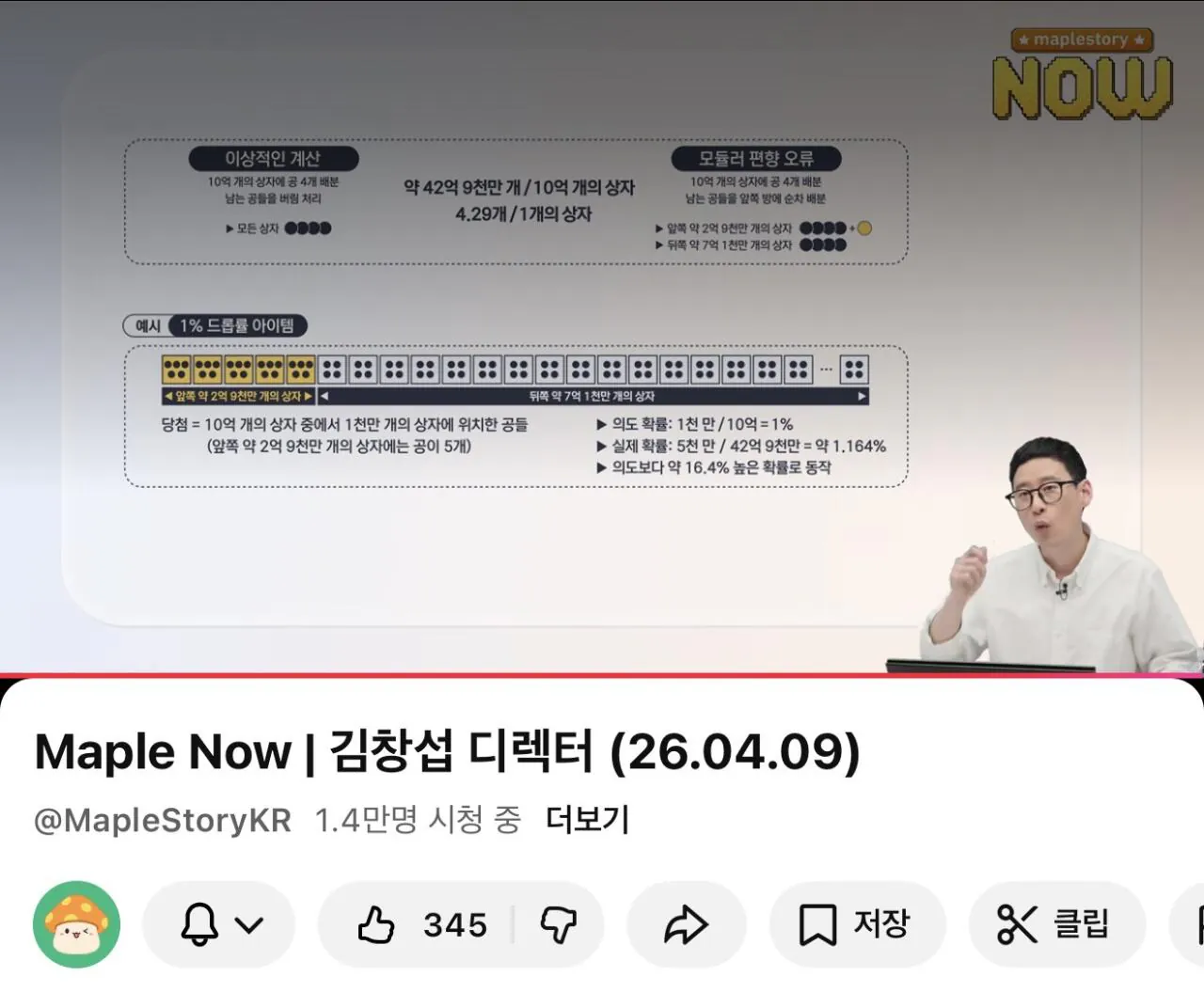 신창섭 메이플 라방에서 수학 강의 나가는 중