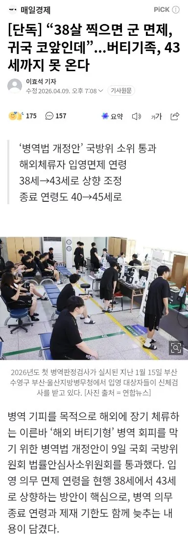38살 되면 군면제 된다더니 43살 때까지 못 간다고?