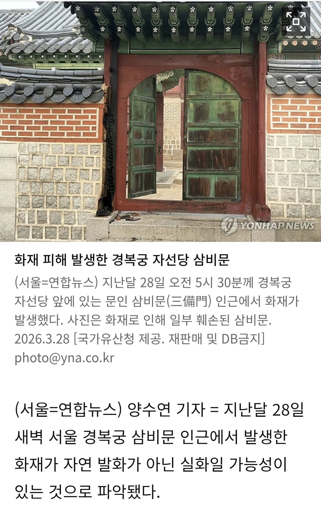 경복궁 불난 거 방화였다네…범인은 이미 해외 도주