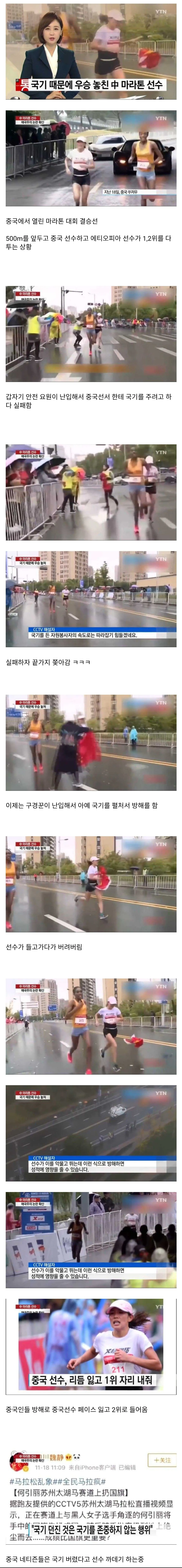 마라톤 1등이 국기 때문에 물 건너갔다는데