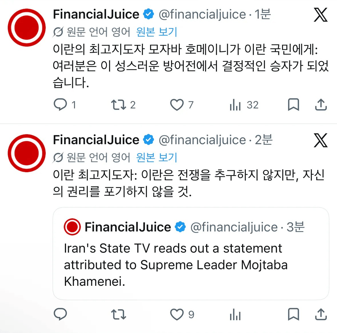 이란 정부가 공식 입장에서 전쟁을 원하지 않는다고 다시 한번 분명히 했다.다만 자신들의 권리는 절대 양보할 수 없다는 방침은 확고하다고 강조했다.이번 사태는 이란의 정당한 방어 행동이었으며 국민 전체가 승리자라고 표현했다.이어 피해에 대한 배상을 국제사회에 요구하겠다고 밝혔다.호르무즈 해협을 놓고는 상황이 완전히 새로운 단계로 진입했다고 언급했다.앞으로 걸프 국가들의 반응이 어떻게 나올지 지켜볼 예정인 상황이다.